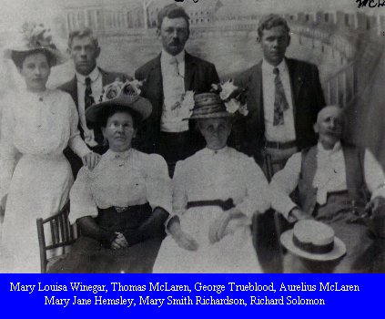 Mary Louisa Winegar, Thomas McLaren, George Trueblood, Aurelius McLaren, Mary Jane Hemsley, Mary Smith Richardson, Richard Solomon {JPG 35 kb}